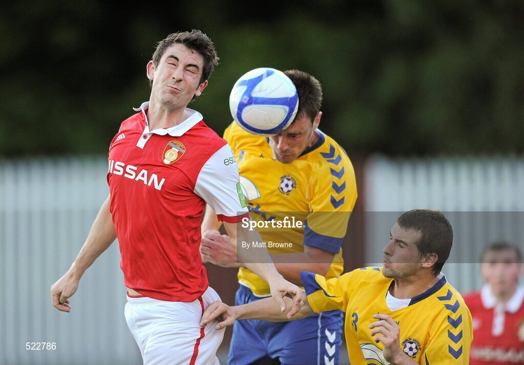 3 June 2011; Ian Daly, St Patrick's Athletic, in action against Carl Redmond and Peter Sherlock, Crumlin United. FAI Ford Cup Third Round, Crumlin United v St Patrick's Athletic, Richmond Park, Inchicore, Dublin. Picture credit: Matt Browne / SPORTSFILE