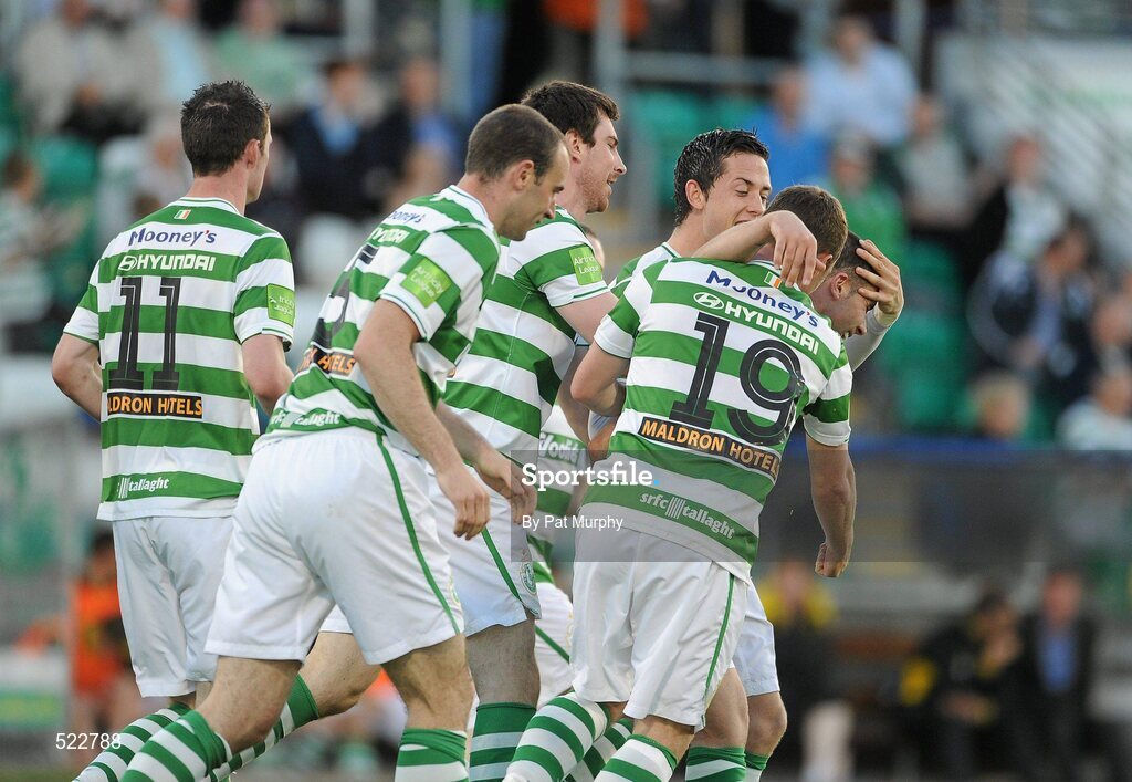 3 June 2011; Shamrock Rovers players celebrate after Chris Turner, hidden, scored his side's second goal of the game. FAI Ford Senior Challenge Cup 2011, Third Round, Shamrock Rovers v Athlone Town, Tallaght Stadium, Tallaght, Co. Dublin. Picture credit: Pat Murphy / SPORTSFILE