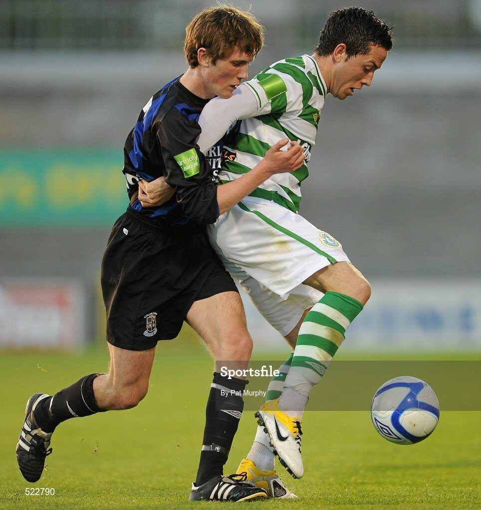 3 June 2011; Billy Dennehy, Shamrock Rovers, in action against Ronan Stack, Athlone Town. FAI Ford Senior Challenge Cup 2011, Third Round, Shamrock Rovers v Athlone Town, Tallaght Stadium, Tallaght, Co. Dublin. Picture credit: Pat Murphy / SPORTSFILE