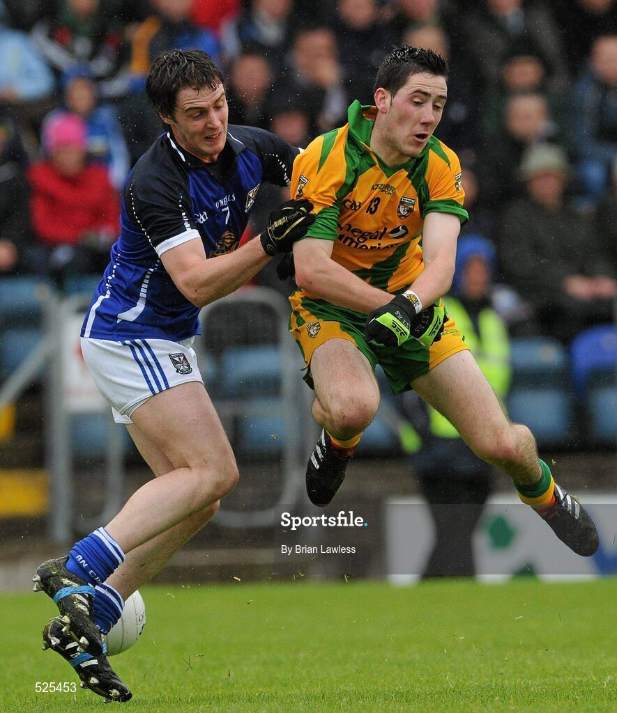 12 June 2011; Mark McHugh, Donegal, in action against Damien Reilly, Cavan. Ulster GAA Football Senior Championship Quarter-Final, Cavan v Donegal, Kingspan Breffni Park, Co. Cavan. Picture credit: Brian Lawless / SPORTSFILE