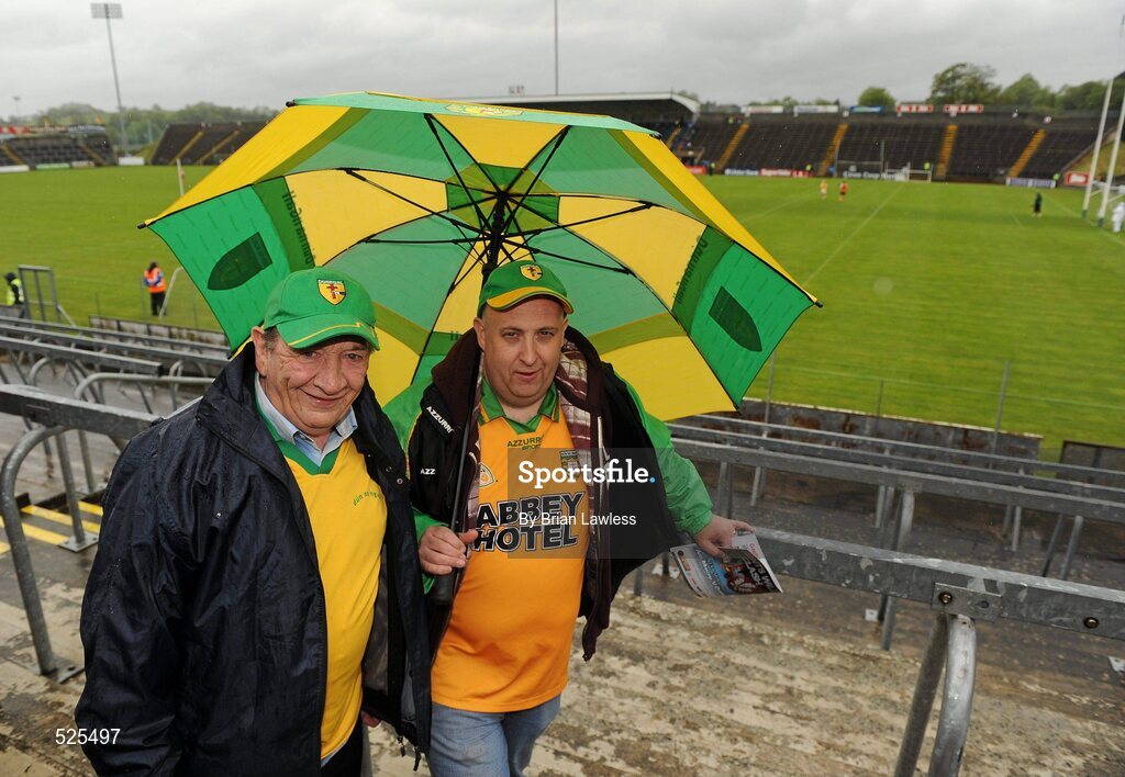 12 June 2011; Donegal supporters John Harkin Snr, left, with his son John Harking, from Bridge End, Donegal, ahead of the match. Ulster GAA Football Senior Championship Quarter-Final, Cavan v Donegal, Kingspan Breffni Park, Co. Cavan. Picture credit: Brian Lawless / SPORTSFILE
