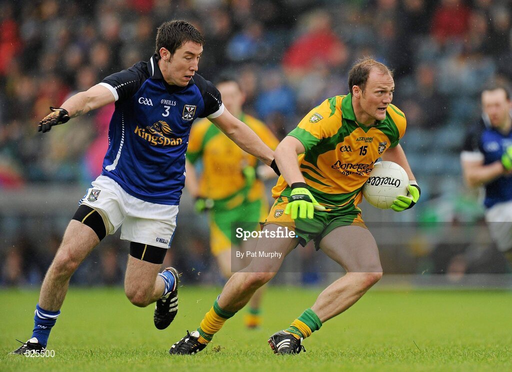 12 June 2011; Colm McFadden, Donegal, in action against Patrick Carroll, Cavan. Ulster GAA Football Senior Championship Quarter-Final, Cavan v Donegal, Kingspan Breffni Park, Co. Cavan. Picture credit: Pat Murphy / SPORTSFILE