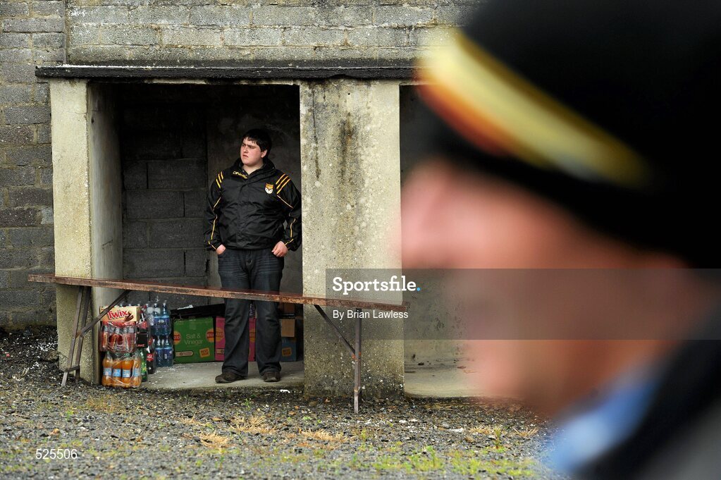12 June 2011; Jonathan Flemming, from Ballinagh, Co. Cavan, shelters from the rain as he waits for the passing trade before the match. Ulster GAA Football Senior Championship Quarter-Final, Cavan v Donegal, Kingspan Breffni Park, Co. Cavan. Picture credit: Brian Lawless / SPORTSFILE