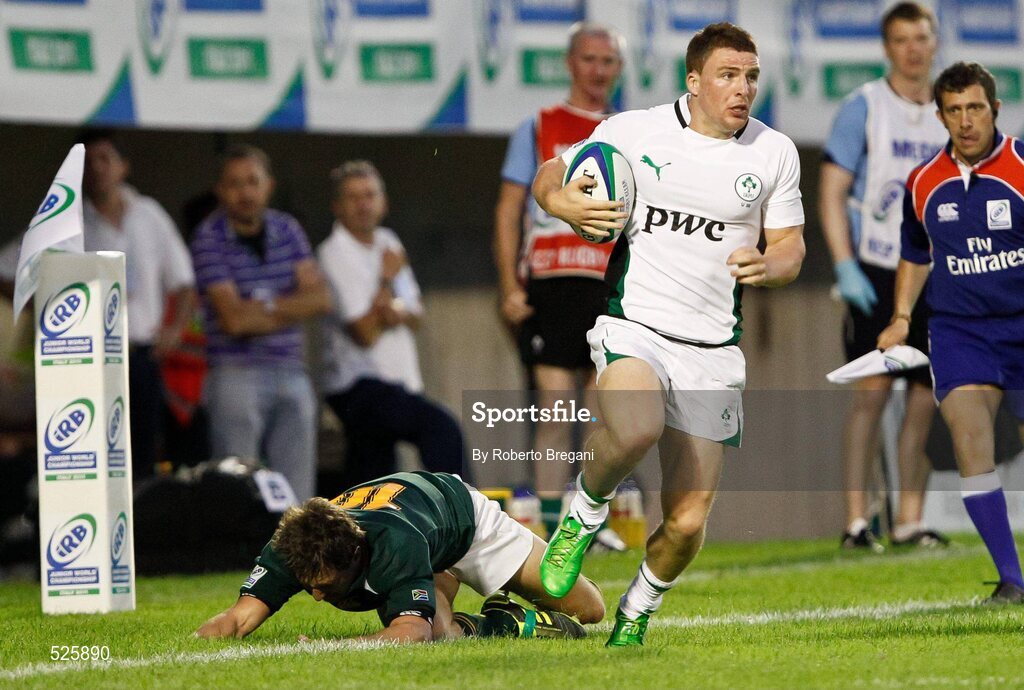 14 June 2011; Andrew Conway, Ireland, on his way to scoring a try. IRB Junior World Championship, Pool C, Ireland v South Africa, Stadio Communale di Monigo, Treviso, Italy. Picture credit: Roberto Bregani / SPORTSFILE