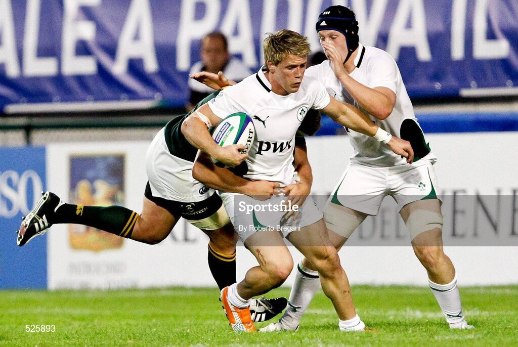 14 June 2011; Tiernan O'Halloran, Ireland, attempts to break through the South Africa defense. IRB Junior World Championship, Pool C, Ireland v South Africa, Stadio Communale di Monigo, Treviso, Italy. Picture credit: Roberto Bregani / SPORTSFILE
