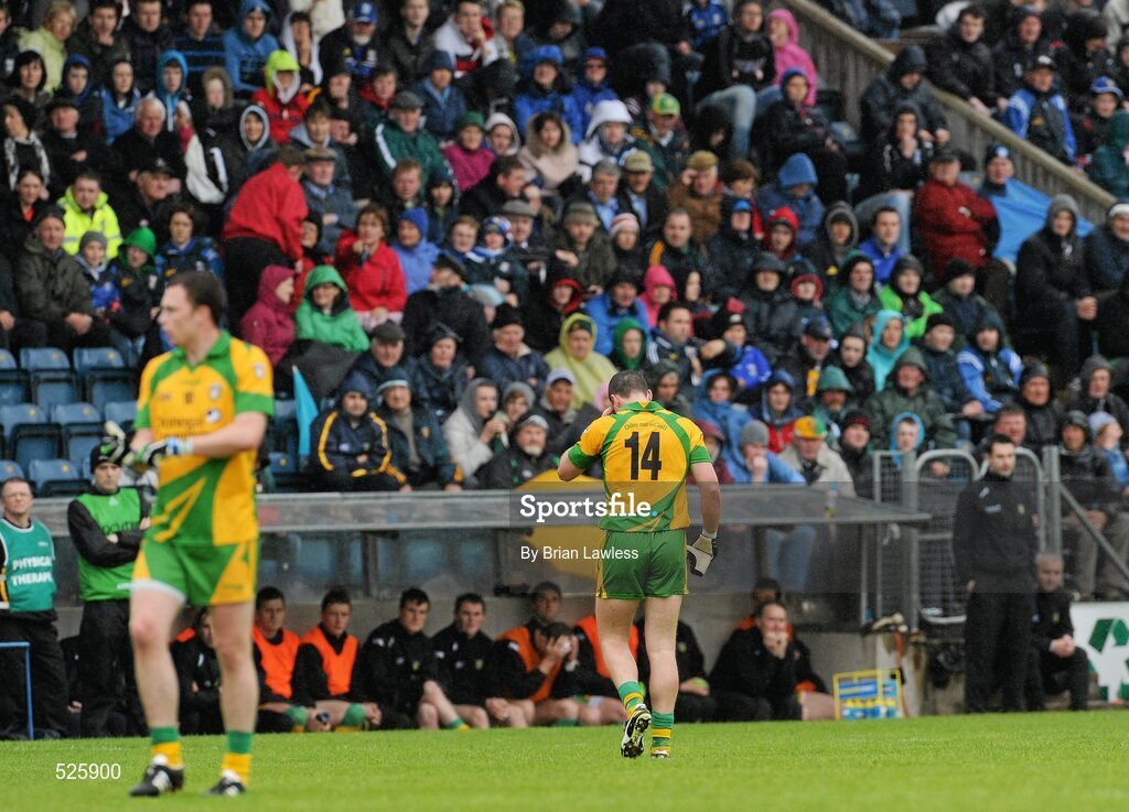 12 June 2011; Donegal's Michael Murphy leaves the field after he was sent off. Ulster GAA Football Senior Championship Quarter-Final, Cavan v Donegal, Kingspan Breffni Park, Co. Cavan. Picture credit: Brian Lawless / SPORTSFILE