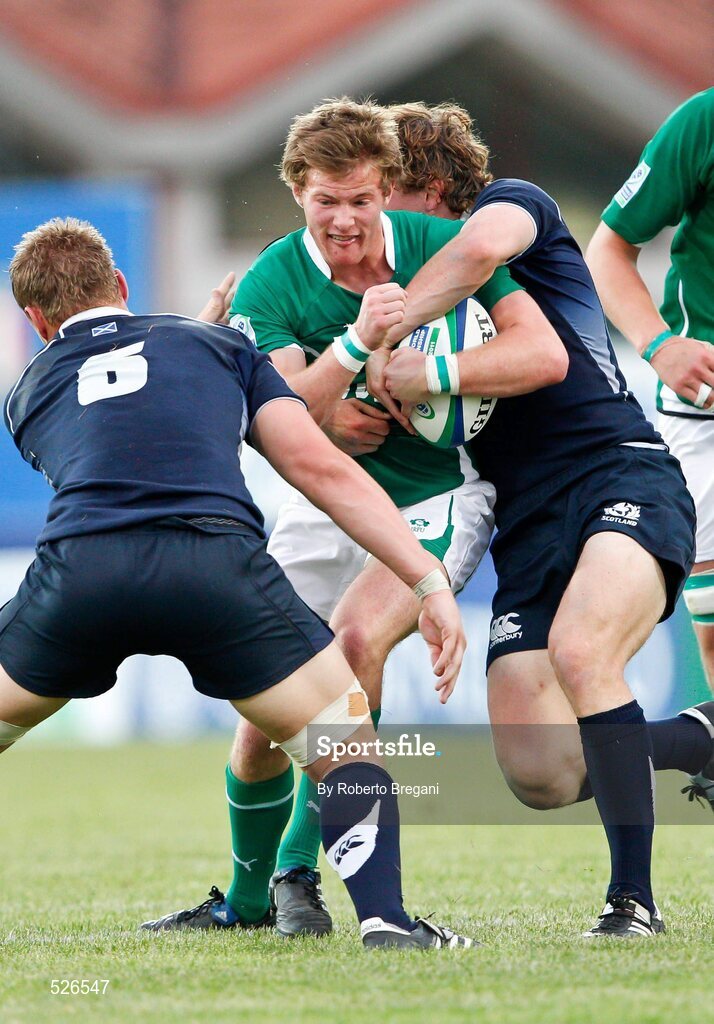 18 June 2011; Kieran Marmion, Ireland, tries to break through the Scotland defence. IRB Junior World Championship, Pool C, Ireland v Scotland, Stadio Mario Battaglini, Rovigo, Italy. Picture credit: Roberto Bregani / SPORTSFILE