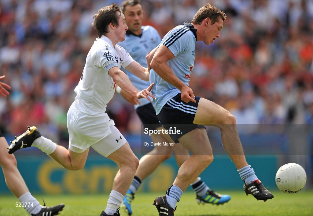 26 June 2011; Paul Flynn, Dublin, scores his side's first goal despite the challange of Ollie Lyons, Kildare. Leinster GAA Football Senior Championship Semi-Final, Dublin v Kildare, Croke Park, Dublin. Picture credit: David Maher / SPORTSFILE
