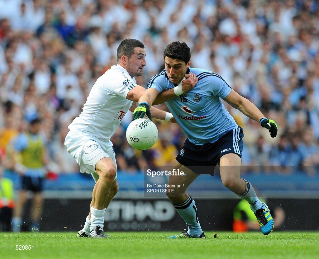 26 June 2011; Bernard Brogan, Dublin, in action against Aindriœ Mac Lochlainn, Kildare. Leinster GAA Football Senior Championship Semi-Final, Dublin v Kildare, Croke Park, Dublin. Picture credit: Dáire Brennan / SPORTSFILE