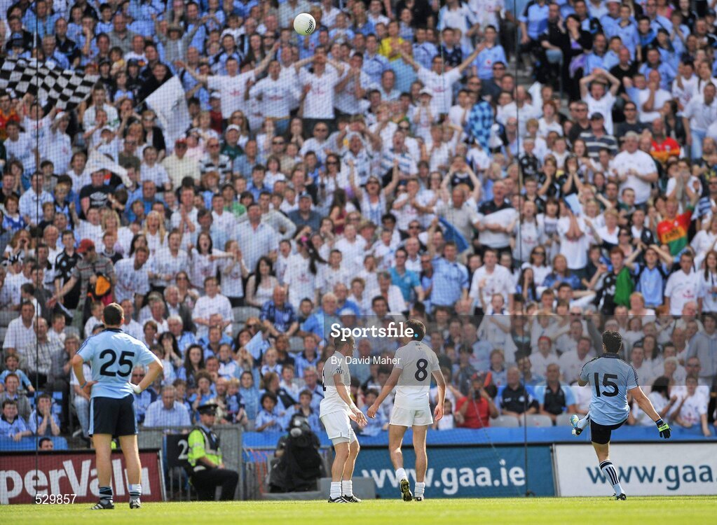26 June 2011; Bernard Brogan, Dublin, scores the match winning point from a free late in the game. Leinster GAA Football Senior Championship Semi-Final, Dublin v Kildare, Croke Park, Dublin. Picture credit: David Maher / SPORTSFILE