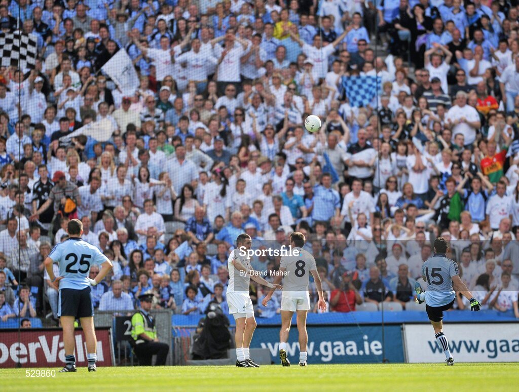 26 June 2011; Bernard Brogan, Dublin, scores the match winning point from a free late in the game. Leinster GAA Football Senior Championship Semi-Final, Dublin v Kildare, Croke Park, Dublin. Picture credit: David Maher / SPORTSFILE