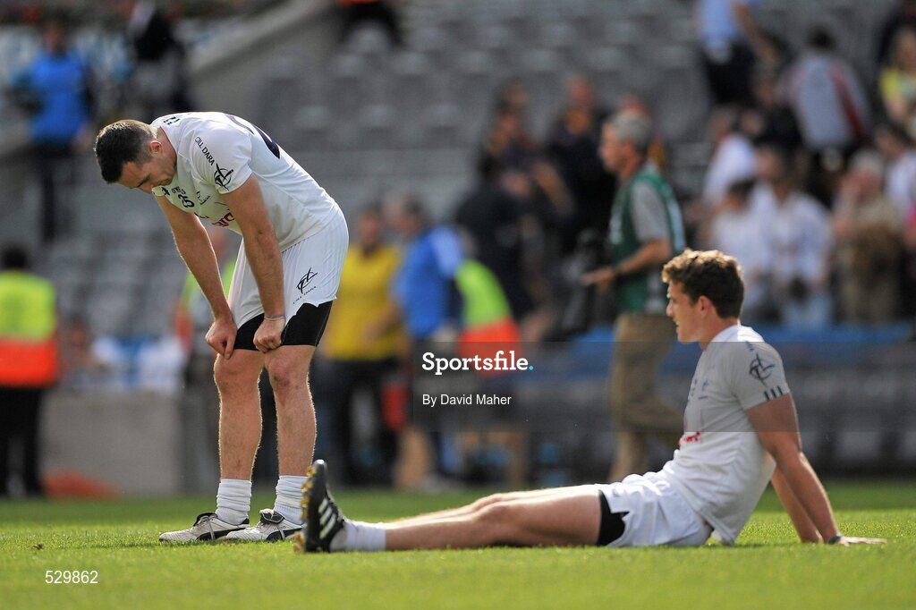 26 June 2011; Disappointed Kildare players Robert Kelly, left, and Hugh Lynch at the end of the game. Leinster GAA Football Senior Championship Semi-Final, Dublin v Kildare, Croke Park, Dublin. Picture credit: David Maher / SPORTSFILE