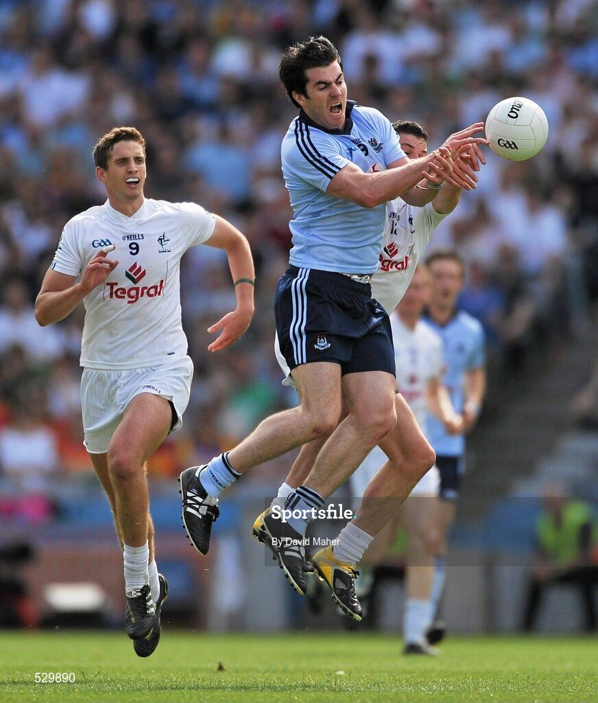 26 June 2011; Michael Darragh Macauley, Dublin, in action against Eamonn Callaghan, Kildare resulting in the Dublin player been substitued with a finger injury. Leinster GAA Football Senior Championship Semi-Final, Dublin v Kildare, Croke Park, Dublin. Picture credit: David Maher / SPORTSFILE