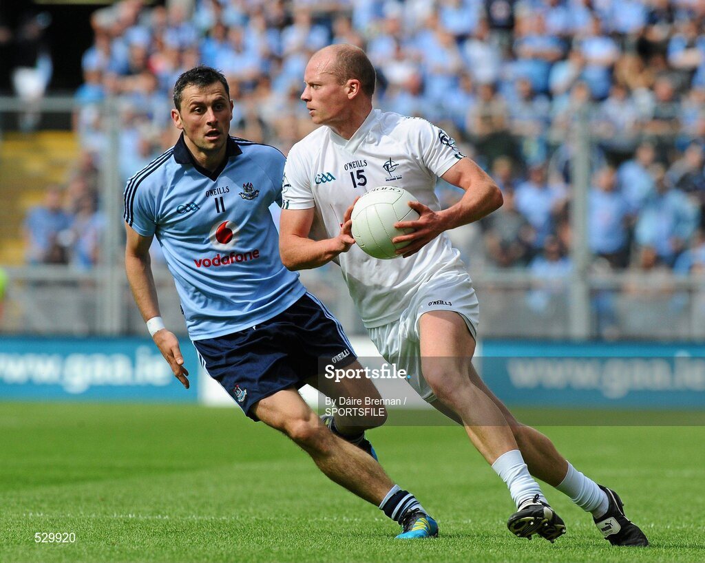 26 June 2011; James Kavanagh, Kildare, in action against Alan Brogan, Dublin. Leinster GAA Football Senior Championship Semi-Final, Dublin v Kildare, Croke Park, Dublin. Picture credit: Dáire Brennan / SPORTSFILE