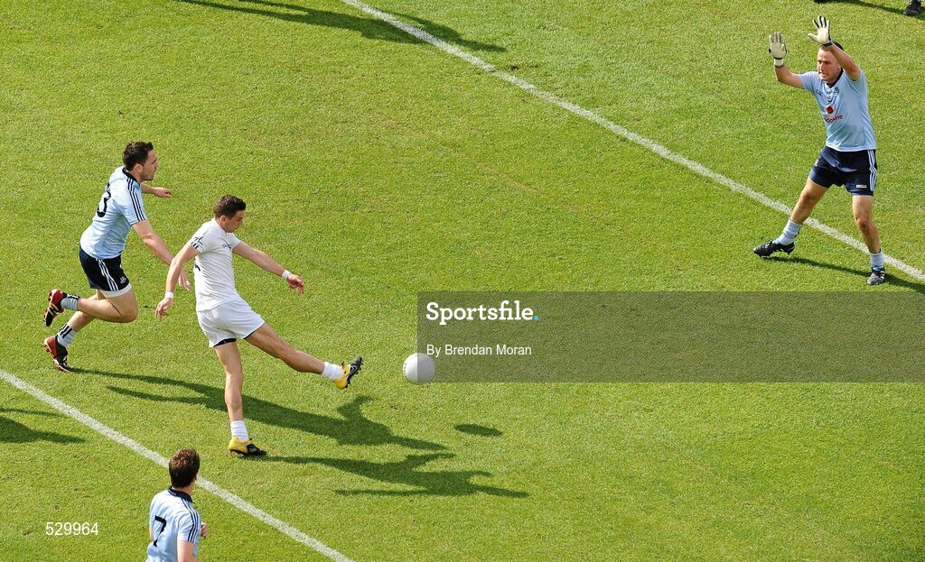 26 June 2011; Eamonn Callaghan, Kildare, scores his side's late goal against Dublin. Leinster GAA Football Senior Championship Semi-Final, Dublin v Kildare, Croke Park, Dublin. Picture credit: Brendan Moran / SPORTSFILE