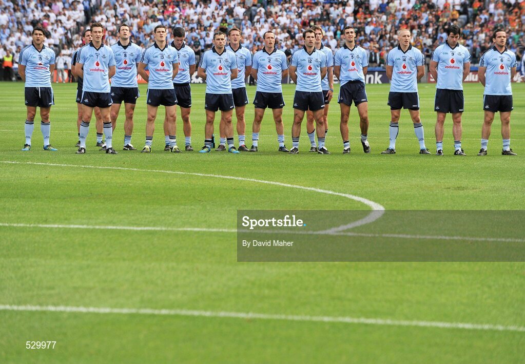 26 June 2011; Dublin players stand during the playing of the National Anthem. Leinster GAA Football Senior Championship Semi-Final, Dublin v Kildare, Croke Park, Dublin. Picture credit: David Maher / SPORTSFILE
