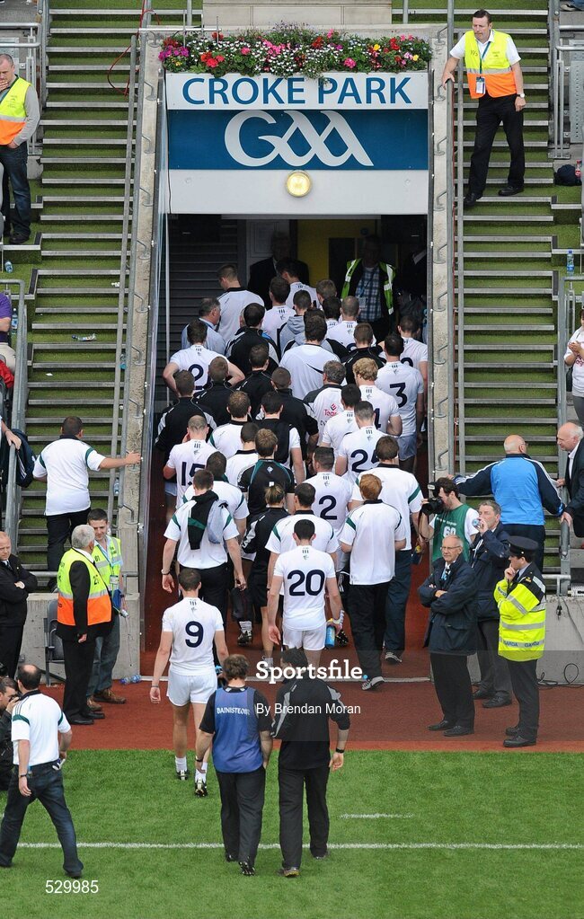 26 June 2011; The Kildare team leave the pitch at the end of the game. Leinster GAA Football Senior Championship Semi-Final, Dublin v Kildare, Croke Park, Dublin. Picture credit: Brendan Moran / SPORTSFILE