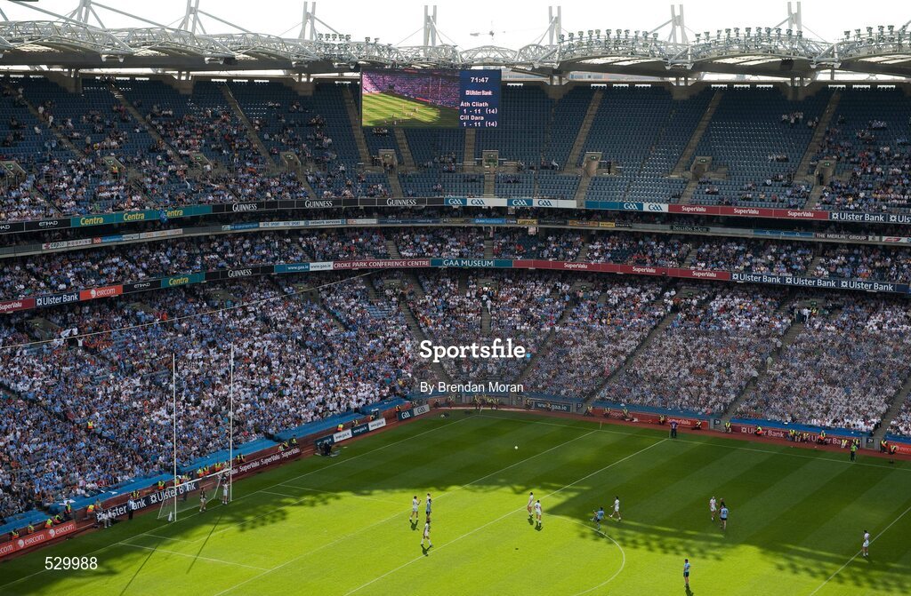 26 June 2011; Bernard Brogan, 15, Dublin, kicks the winning point against Kildare during added time. Leinster GAA Football Senior Championship Semi-Final, Dublin v Kildare, Croke Park, Dublin. Picture credit: Brendan Moran / SPORTSFILE