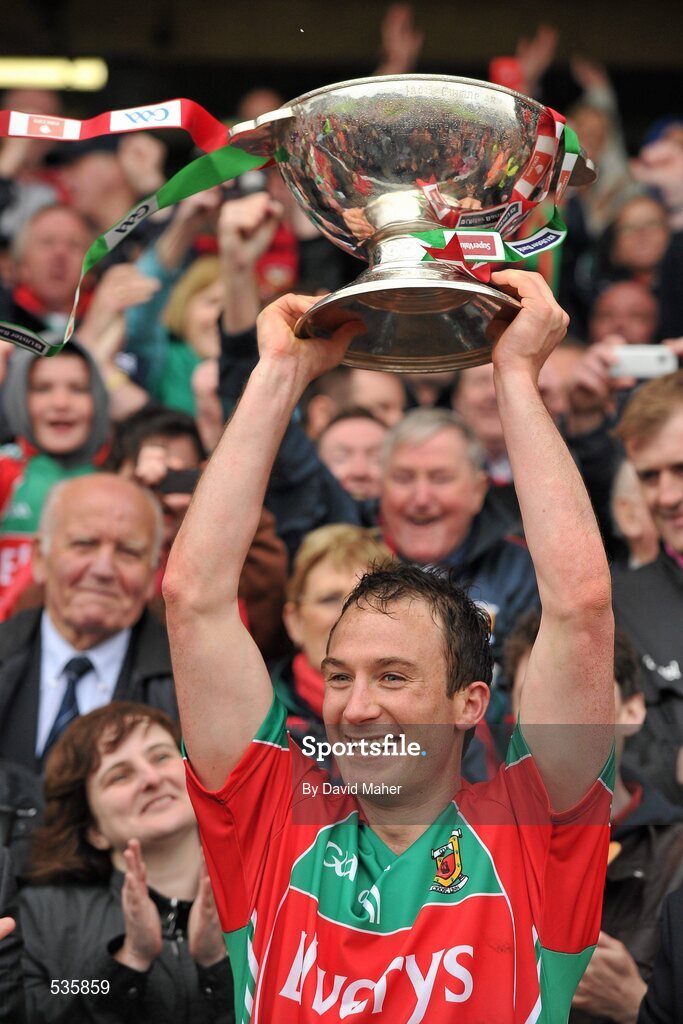17 July 2011; Mayo captain Alan Dillon lifts the Nestor cup at the end of the game. Connacht GAA Football Senior Championship Final, Roscommon v Mayo, Dr. Hyde Park, Roscommon. Picture credit: David Maher / SPORTSFILE