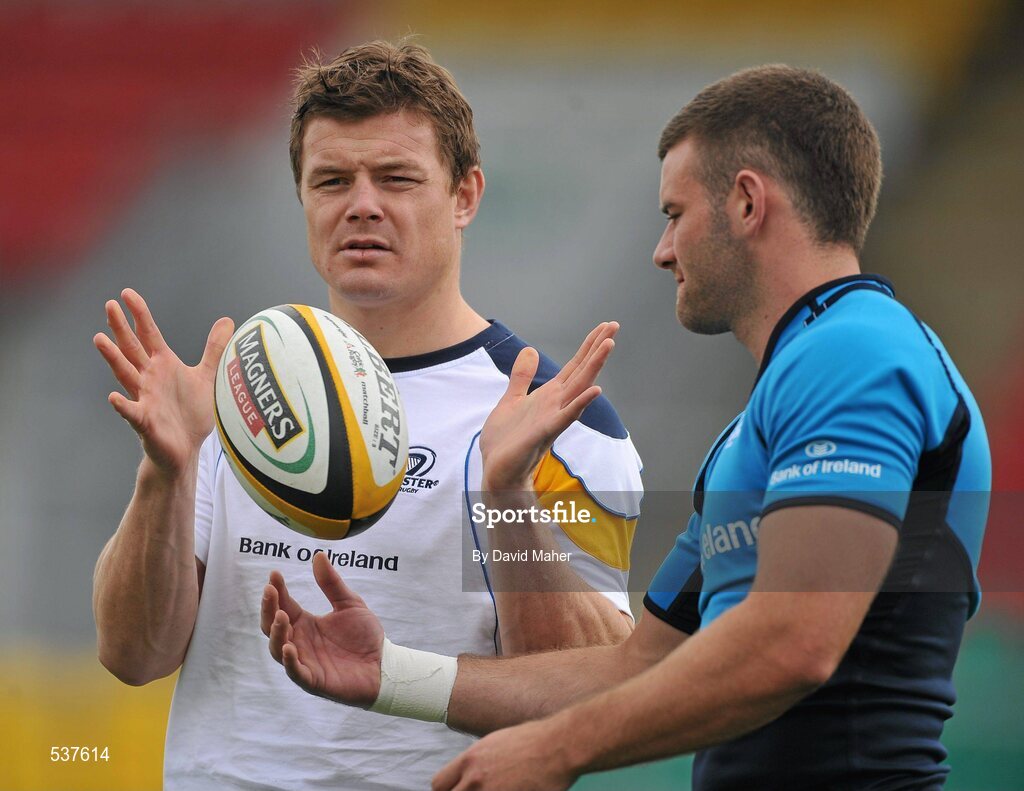 22 July 2011; Leinster's Brian O'Driscoll and Fergus McFadden in action during an open training session ahead of the 2011/12 season. Tallaght Stadium, Tallaght, Dublin. Picture credit: David Maher / SPORTSFILE