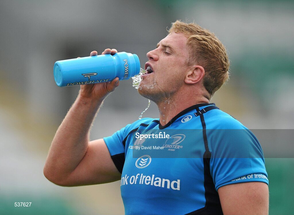 22 July 2011; Leinster's Jamie Heaslip takes a break during an open training session ahead of the 2011/12 season. Tallaght Stadium, Tallaght, Dublin. Picture credit: David Maher / SPORTSFILE