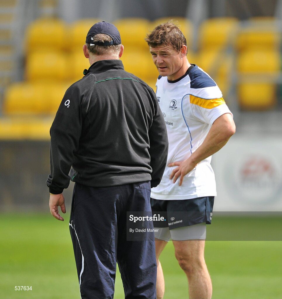 22 July 2011; Leinster's Brian O'Driscoll with Ireland head coach Declan Kidney during an open training session ahead of the 2011/12 season. Tallaght Stadium, Tallaght, Dublin. Picture credit: David Maher / SPORTSFILE