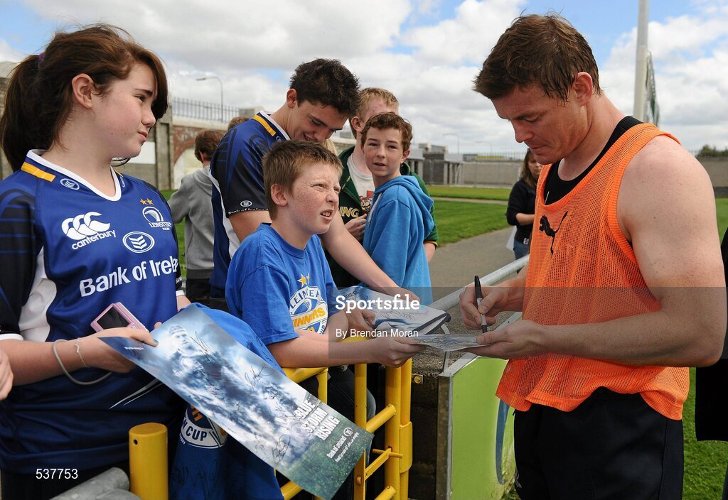 22 July 2011; Leinster's Brian O'Driscoll signs an autograph for Michael Byrne, 12, from Tullow, Co. Carlow, during an open training session ahead of the 2011/12 season. Tallaght Stadium, Tallaght, Dublin. Picture credit: Brendan Moran / SPORTSFILE