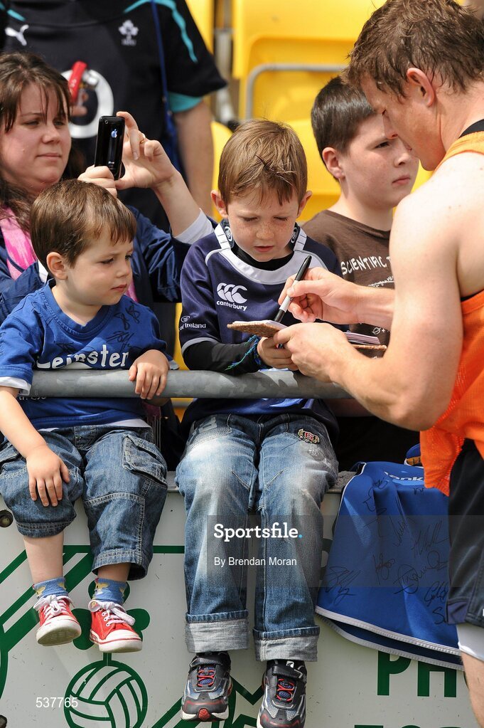22 July 2011; Leinster supporters Matthew Murphy, left, age 3, and his brother Luke, from Newcastle, Co. Dublin, get an autograph from Brian O'Driscoll during an open training session ahead of the 2011/12 season. Tallaght Stadium, Tallaght, Dublin. Picture credit: Brendan Moran / SPORTSFILE