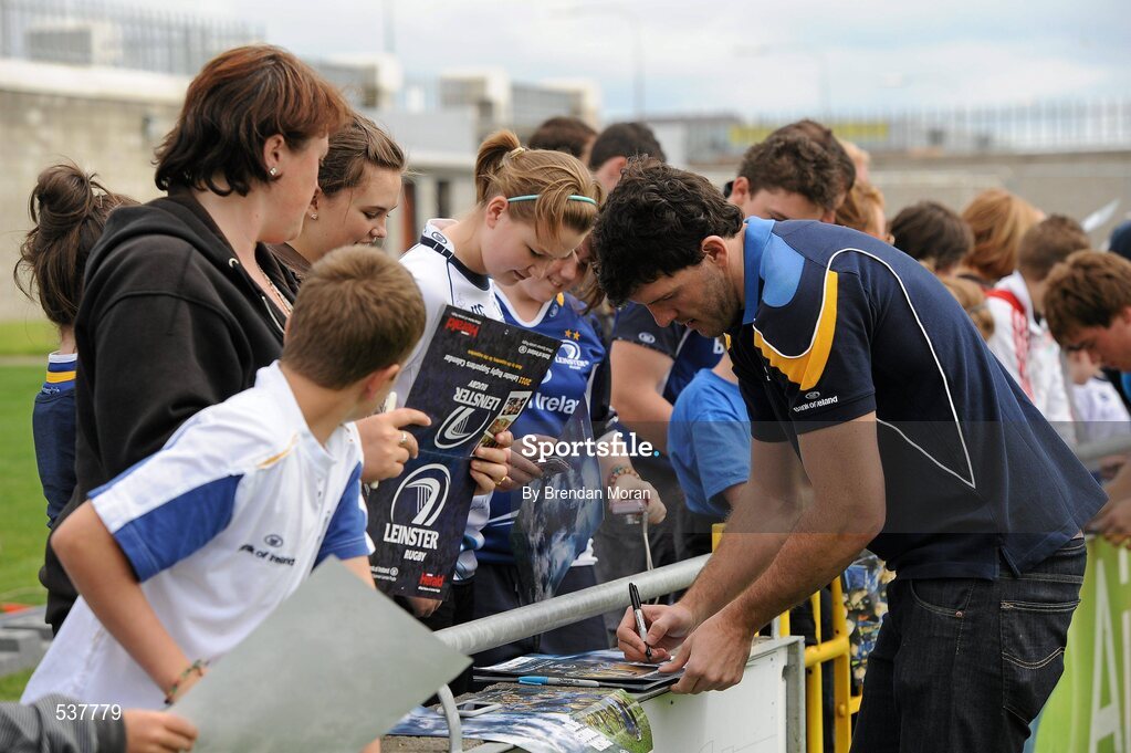 22 July 2011; Leinster's Shane Horgan signs autographs during an open training session ahead of the 2011/12 season. Tallaght Stadium, Tallaght, Dublin. Picture credit: Brendan Moran / SPORTSFILE