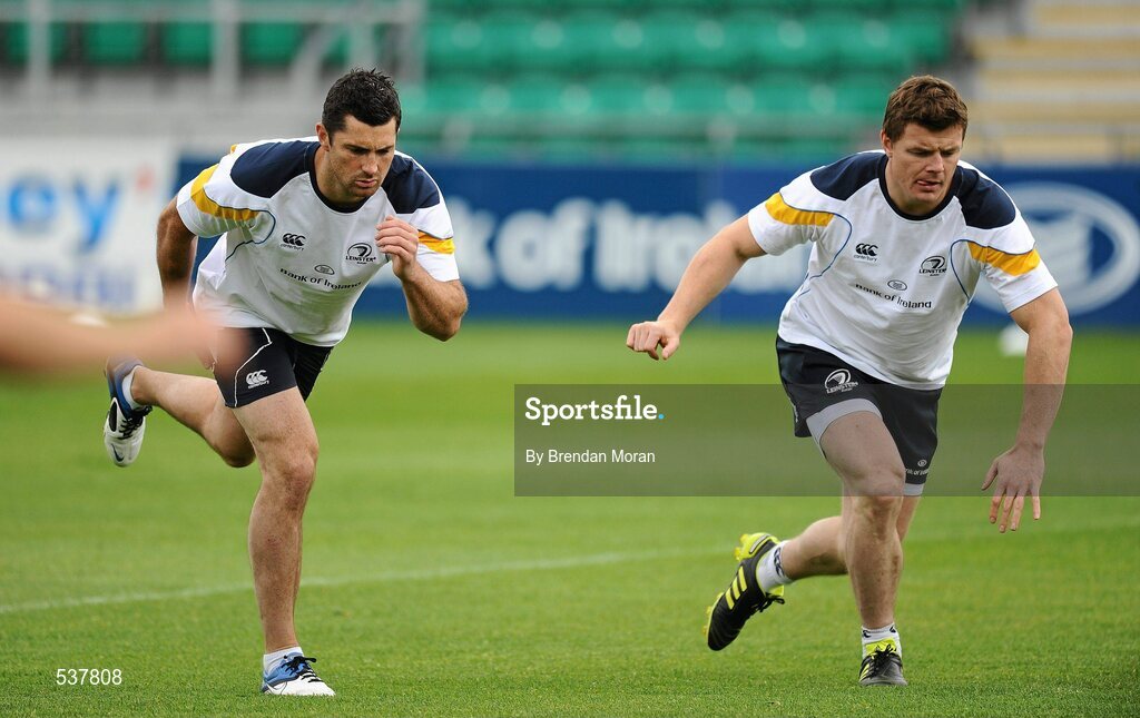 22 July 2011; Leinster's Rob Kearney, left, and Brian O'Driscoll in action during an open training session ahead of the 2011/12 season. Tallaght Stadium, Tallaght, Dublin. Picture credit: Brendan Moran / SPORTSFILE