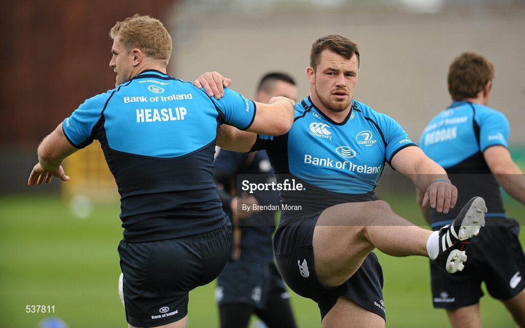 22 July 2011; Leinster's Jamie Heaslip and Cian Healy in action during an open training session ahead of the 2011/12 season. Tallaght Stadium, Tallaght, Dublin. Picture credit: Brendan Moran / SPORTSFILE