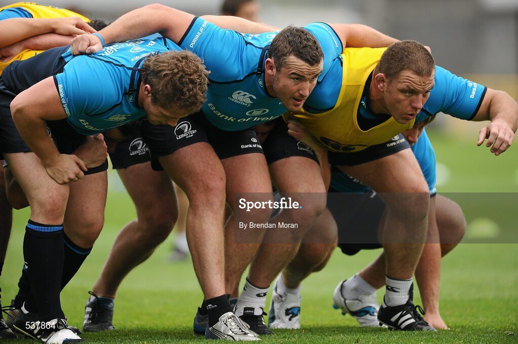 22 July 2011; Leinster's front row, from left, Jason Harris-Wright, Aaron Dundon and Heinke van der Merwe in action during an open training session ahead of the 2011/12 season. Tallaght Stadium, Tallaght, Dublin. Picture credit: Brendan Moran / SPORTSFILE