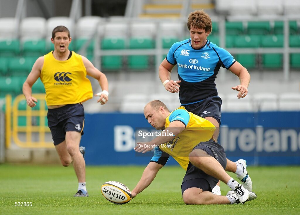22 July 2011; Leinster's Richardt Strauss, Cillian Willis, left, and Dominic Ryan in action during an open training session ahead of the 2011/12 season. Tallaght Stadium, Tallaght, Dublin. Picture credit: Brendan Moran / SPORTSFILE