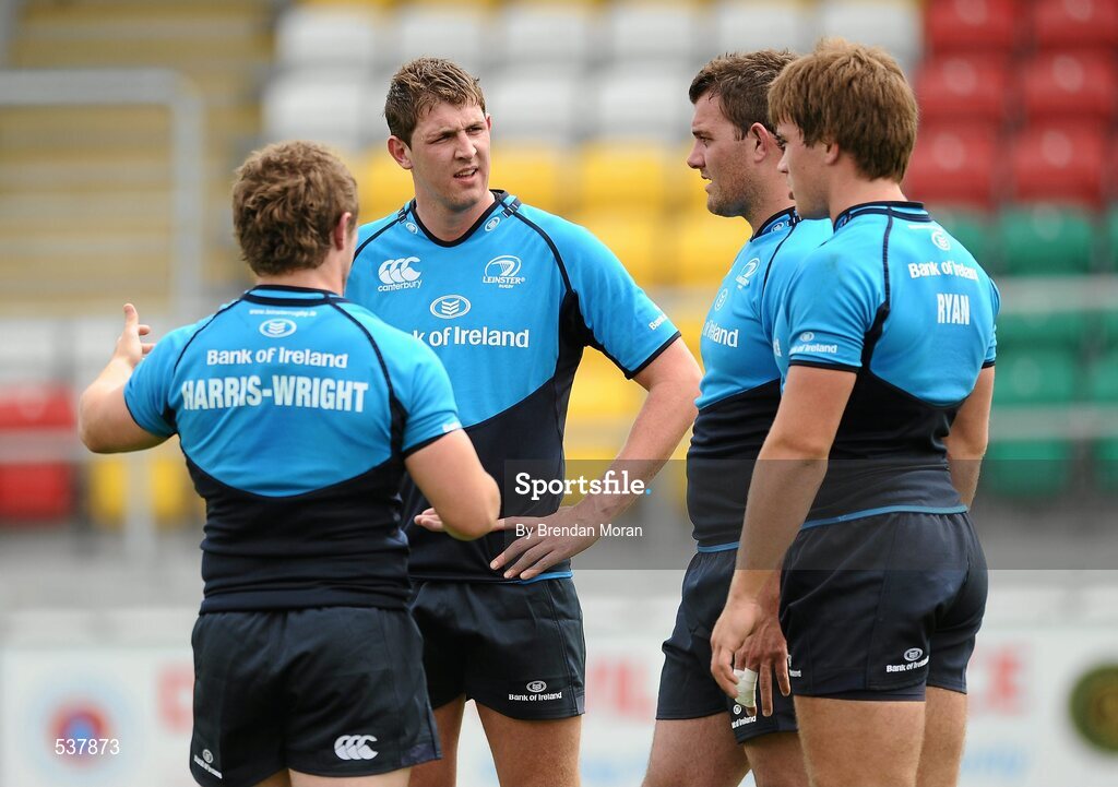 22 July 2011; Leinster players, from left, Jason Harris-Wright, Mark Flanagan, Steven Sykes and Dominic Ryan during an open training session ahead of the 2011/12 season. Tallaght Stadium, Tallaght, Dublin. Picture credit: Brendan Moran / SPORTSFILE