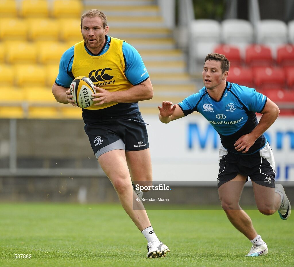 22 July 2011; Leinster's Damian Browne and John Cooney, right, in action during an open training session ahead of the 2011/12 season. Tallaght Stadium, Tallaght, Dublin. Picture credit: Brendan Moran / SPORTSFILE