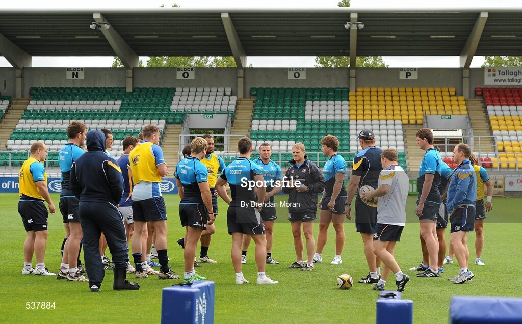 22 July 2011; Leinster head coach Joe Schmidt speaks to his players during an open training session ahead of the 2011/12 season. Tallaght Stadium, Tallaght, Dublin. Picture credit: Brendan Moran / SPORTSFILE