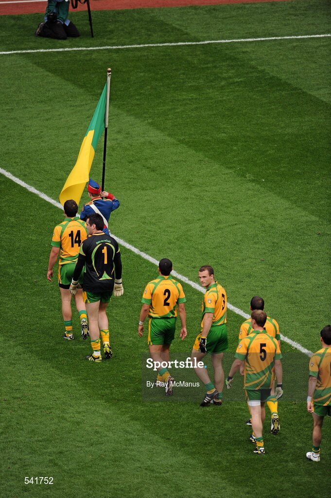 30 July 2011; Donegal captain Michael Murphy leads his team in the pre-match parade. Murphy was subsequently substituted before the start of the game. GAA Football All-Ireland Senior Championship Quarter-Final, Donegal v Kildare, Croke Park, Dublin. Picture credit: Ray McManus / SPORTSFILE