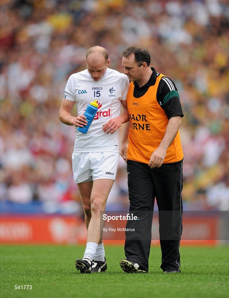 30 July 2011; Kildare selector Aidan O'Rourke in conversation with James Kavanagh early in the game. GAA Football All-Ireland Senior Championship Quarter-Final, Donegal v Kildare, Croke Park, Dublin. Picture credit: Ray McManus / SPORTSFILE