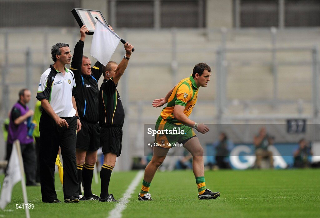 30 July 2011; Donegal Captain Michael Murphy comes on as a first half substitute. GAA Football All-Ireland Senior Championship Quarter-Final, Donegal v Kildare, Croke Park, Dublin. Picture credit: Oliver McVeigh / SPORTSFILE