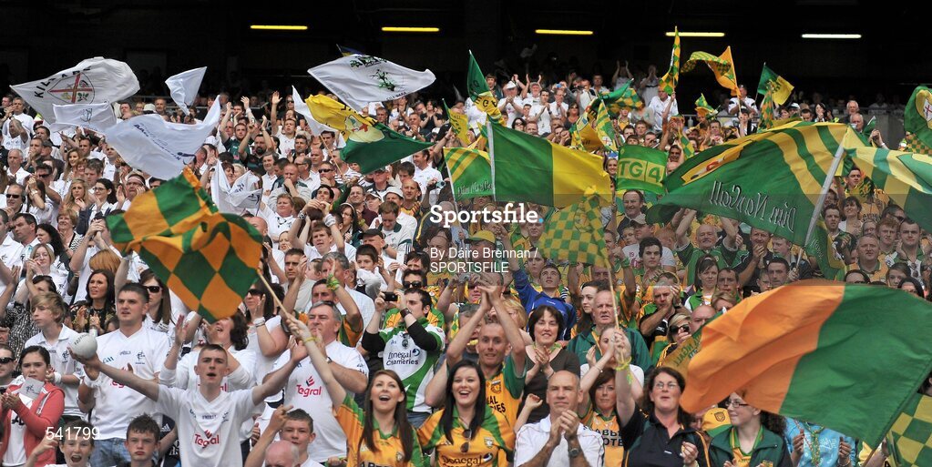 30 July 2011; Kildare and Donegal supporters cheer on their team during the pre-match parade. GAA Football All-Ireland Senior Championship Quarter-Final, Donegal v Kildare, Croke Park, Dublin. Picture credit: Dáire Brennan / SPORTSFILE