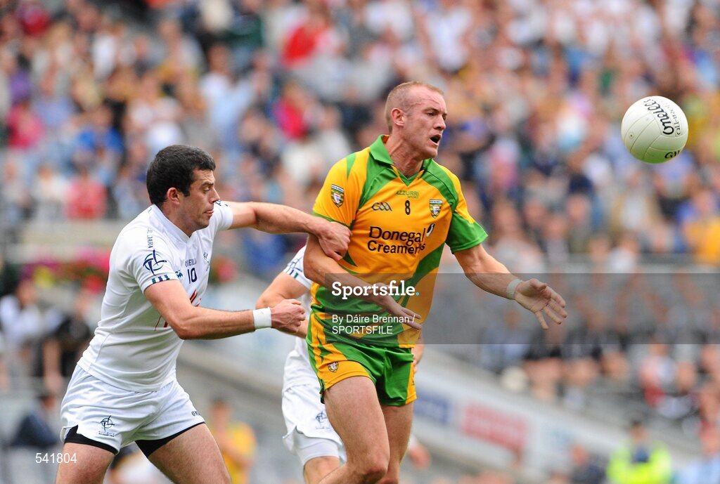 30 July 2011; Neil Gallagher, Donegal, in action against Pádraig O'Neill, Kildare. GAA Football All-Ireland Senior Championship Quarter-Final, Donegal v Kildare, Croke Park, Dublin. Picture credit: Dáire Brennan / SPORTSFILE