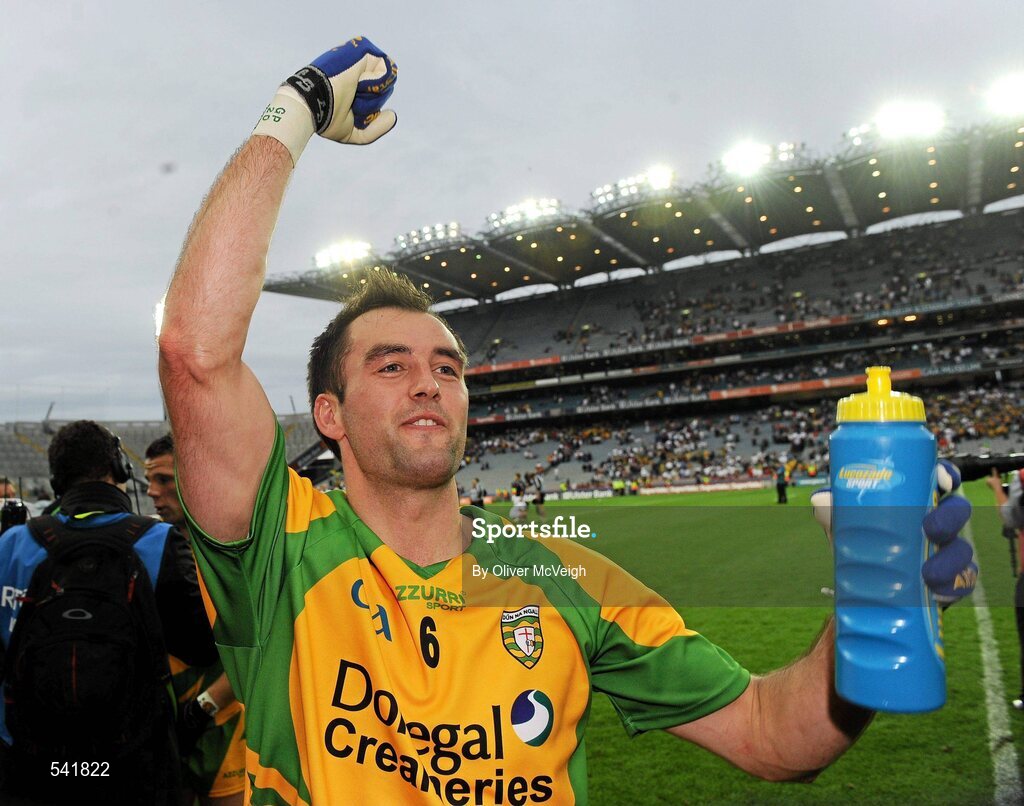 30 July 2011; Karl Lacey, Donegal, celebrates after the game. GAA Football All-Ireland Senior Championship Quarter-Final, Donegal v Kildare, Croke Park, Dublin. Picture credit: Oliver McVeigh / SPORTSFILE