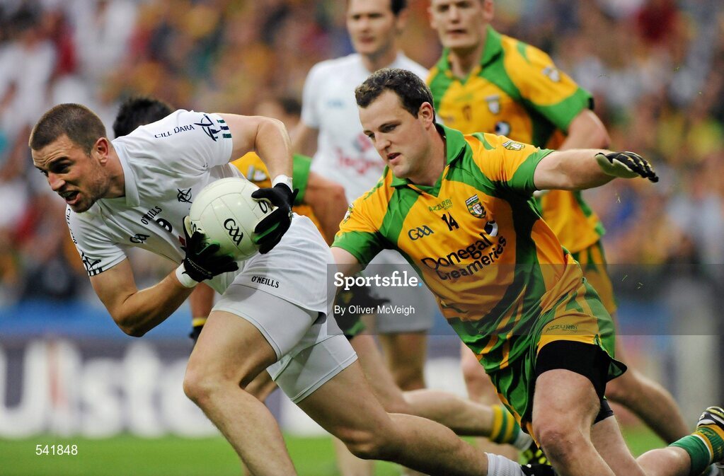 30 July 2011; Daryl Doyle, Kildare, in action against Michael Murphy, Donegal. GAA Football All-Ireland Senior Championship Quarter-Final, Donegal v Kildare, Croke Park, Dublin. Picture credit: Oliver McVeigh / SPORTSFILE