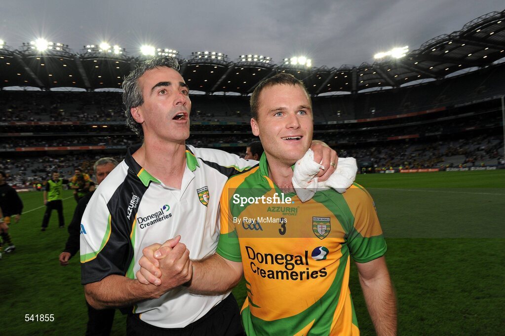 30 July 2011; The Donegal manager Jim McGuinness and full-back Neil McGee after the game. GAA Football All-Ireland Senior Championship Quarter-Final, Donegal v Kildare, Croke Park, Dublin. Picture credit: Ray McManus / SPORTSFILE