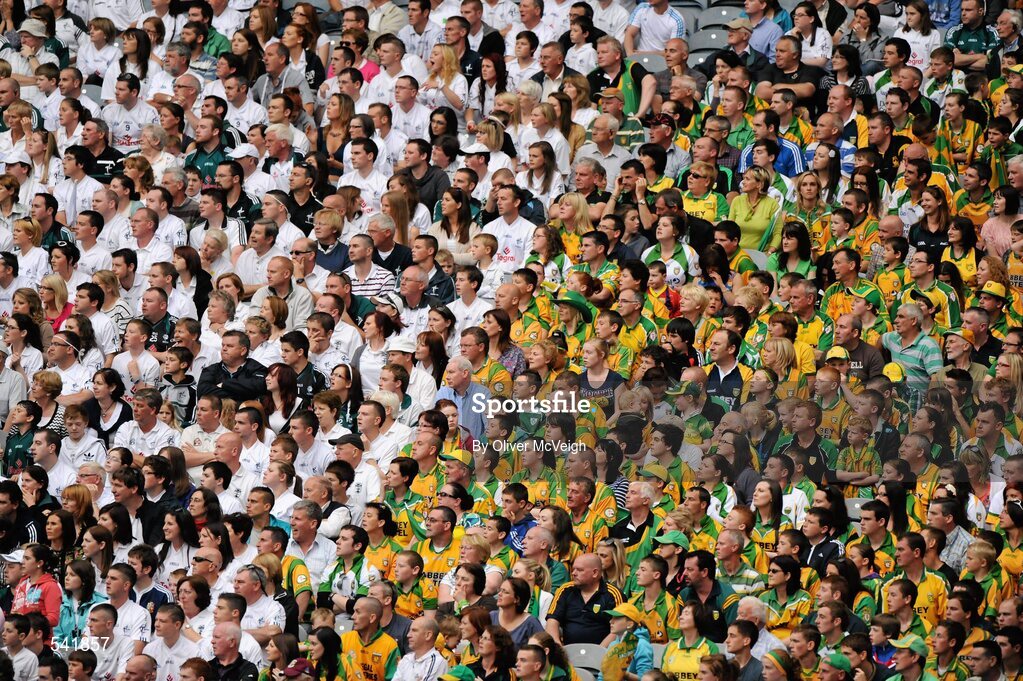 30 July 2011; Supporters from Donegal and Kildare watch on during the tense final minutes. GAA Football All-Ireland Senior Championship Quarter-Final, Donegal v Kildare, Croke Park, Dublin. Picture credit: Oliver McVeigh / SPORTSFILE