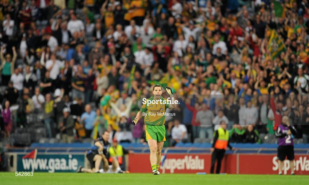30 July 2011; Kevin Cassidy celebrates kicking what proved to be the winning point for Donegal. GAA Football All-Ireland Senior Championship Quarter-Final, Donegal v Kildare, Croke Park, Dublin. Picture credit: Ray McManus / SPORTSFILE