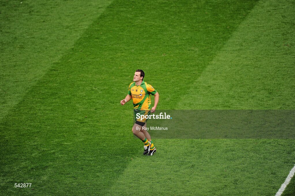 30 July 2011; Donegal captain Michael Murphy runs accross the field after the pre match parade. GAA Football All-Ireland Senior Championship Quarter-Final, Donegal v Kildare, Croke Park, Dublin. Picture credit: Ray McManus / SPORTSFILE
