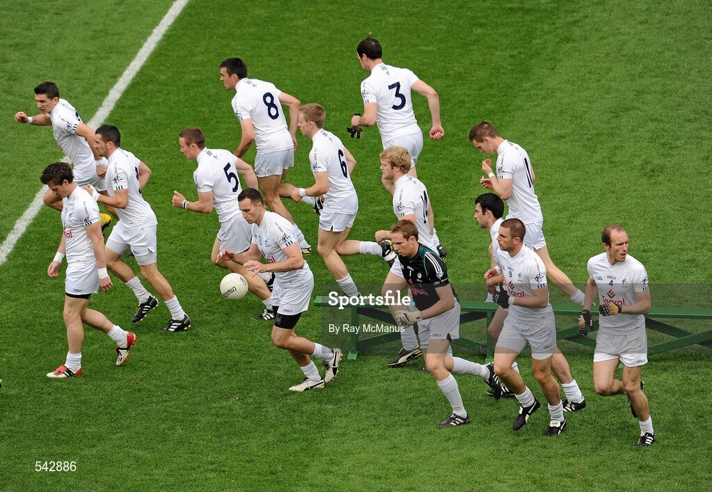 30 July 2011; Members of the Kildare team head for the warm up after the traditional pre match photograph. GAA Football All-Ireland Senior Championship Quarter-Final, Donegal v Kildare, Croke Park, Dublin. Picture credit: Ray McManus / SPORTSFILE