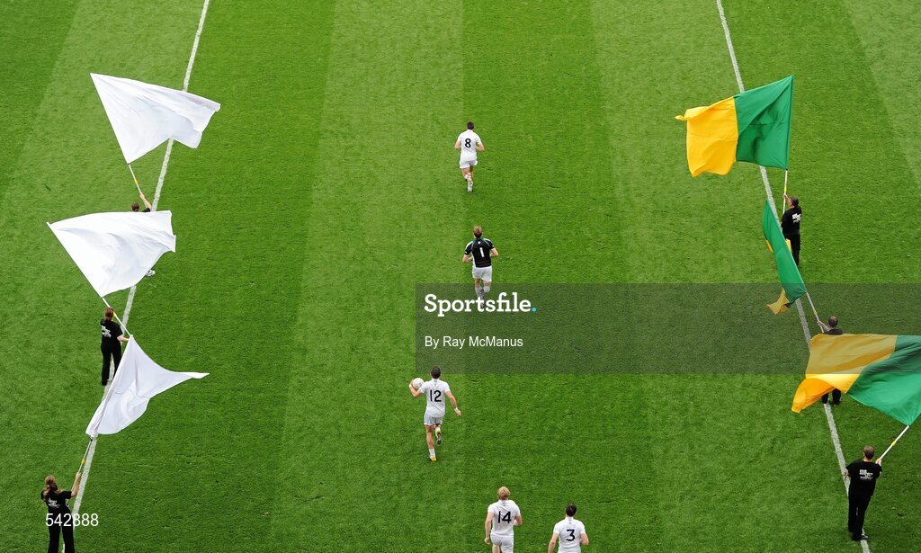 30 July 2011; Captain John Doyle leads out the Kildare team. GAA Football All-Ireland Senior Championship Quarter-Final, Donegal v Kildare, Croke Park, Dublin. Picture credit: Ray McManus / SPORTSFILE