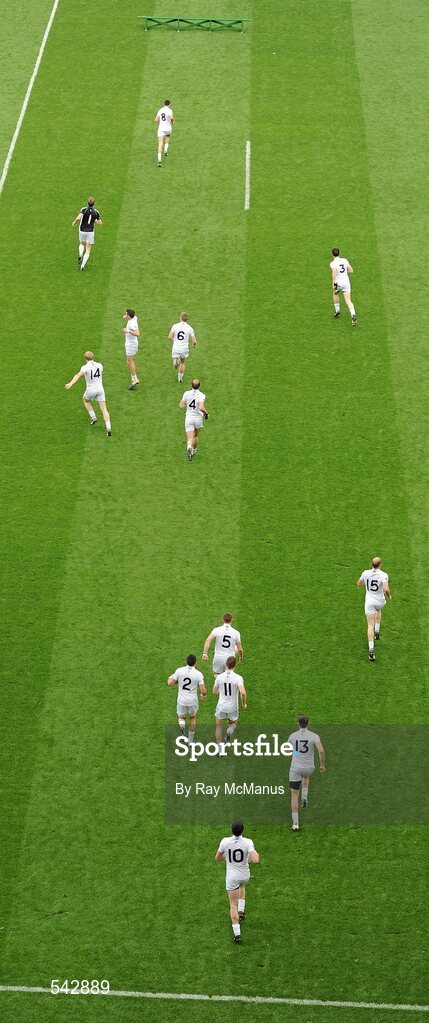 30 July 2011; Captain John Doyle leads out the Kildare team for the traditional photograph. GAA Football All-Ireland Senior Championship Quarter-Final, Donegal v Kildare, Croke Park, Dublin. Picture credit: Ray McManus / SPORTSFILE